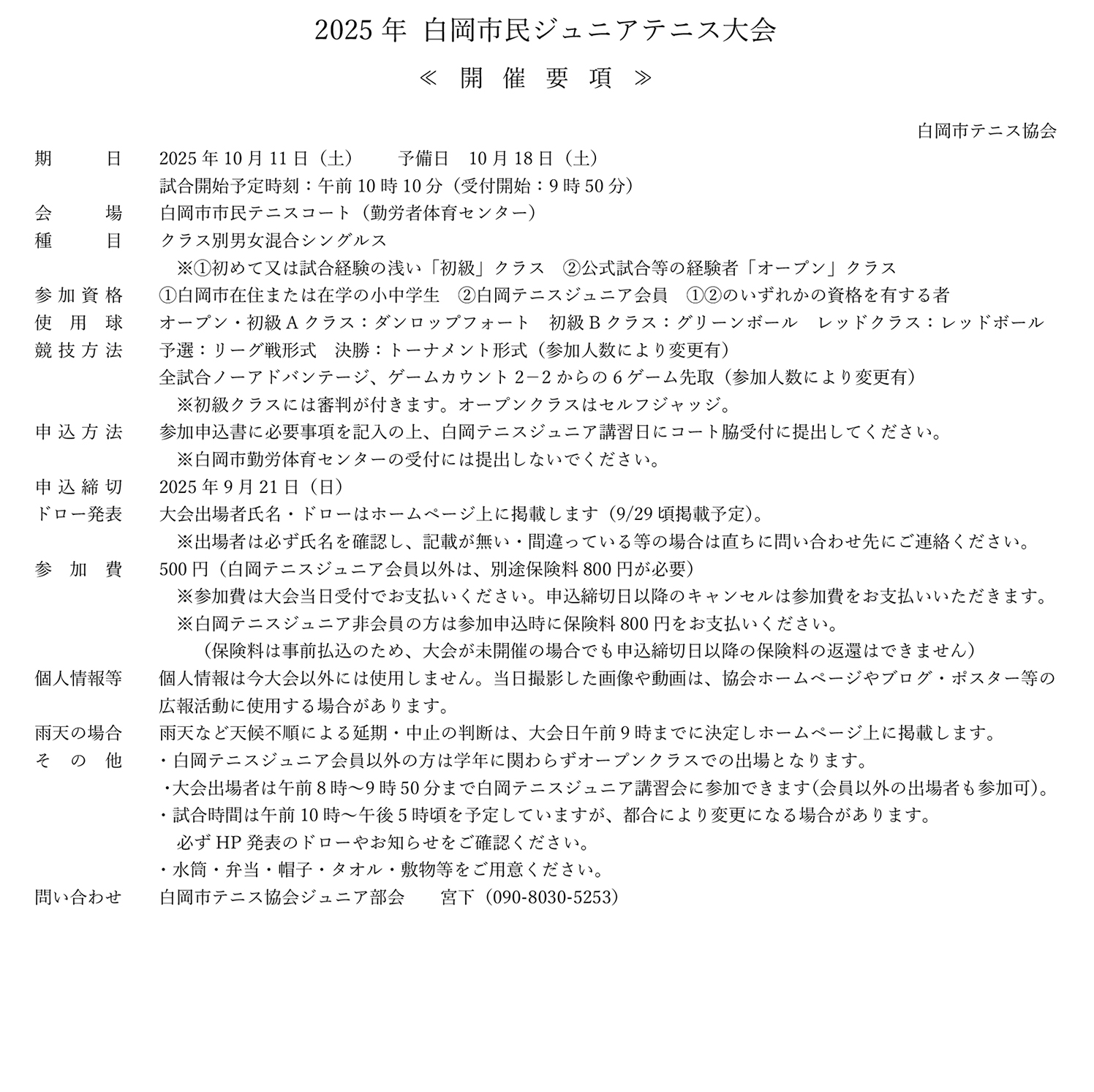 2021年白岡市民体育祭ジュニアテニス大会要項・申込書